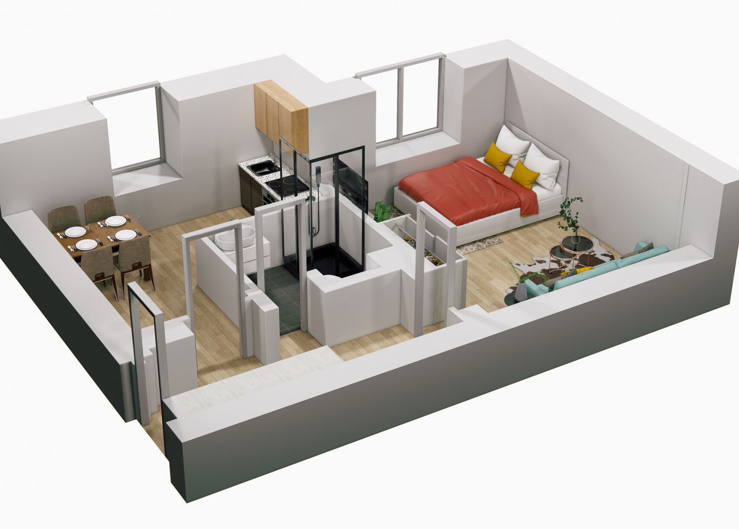 Po vstupu do bytu vás přivítá prostorná chodba, která nabízí dostatek místa pro odkládání věcí a uspořádání vstupního prostoru. Z chodby se vstupuje do oddělené kuchyně, která je vybavena vestavěnými spotřebiči a nabízí pohodlný prostor pro vaření a stolování. Kuchyň je navržena tak, aby maximálně využila dostupný prostor a zároveň poskytovala komfort při každodenním vaření.